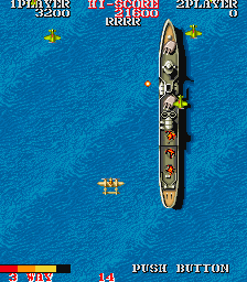 The game is set in the Pacific theater of World War II, off the coast of the Midway Atoll with the Imperial Japanese Armed Forces as the main group of antagonists. The player takes the role of an unnamed U.S. Air Force ace pilot seeking revenge to defeat the Japanese air forces that attacked the American aircraft carrier, destroy all Japanese air and sea forces, fly through the 16 stages of play, and ultimately destroy the battleship Yamato, the game’s final boss.