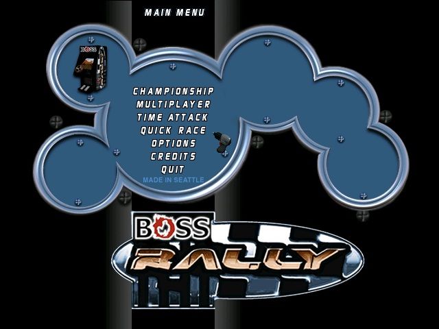 Boss Rally is a racing game that comprises four gameplay modes: Championship, Time Attack, Quick Race, and a multiplayer mode. In Championship, a single player must progress through a series of seasons, with each season requiring the player to race against computer-controller opponents on multiple tracks. Points are awarded based on the position the player finishes a race, and if the required quantity is not met, the player will not qualify for the next season. As the player progresses through the Championship mode, new cars and tracks are unlocked. The game features a total of six tracks and 16 cars.
