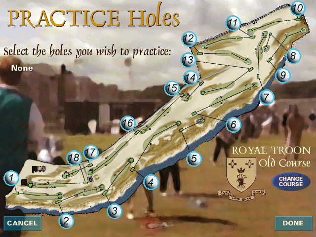 British Open Championship Golf is a three-dimensional (3D) video game that simulates golf, a sport in which players attempt to hit a ball into a hole with as few strokes as possible. In particular, the game is based on The Open Championship, the oldest tournament in golf. The player may compete as a pre- or self-created amateur golfer or as one of eight celebrity athletes, including Sandy Lyle, Vijay Singh and Ian Baker-Finch. Three modes of play—Practice, Match and Tournament—are available. Practice and Match are non-binding preparatory modes: the former allows the player to practice each hole of a course, and the latter engages the player in a pre-tournament match of stroke play, match play or fourball. In the Tournament mode, the player competes in The Open Championship, which consists of four 18-hole matches.