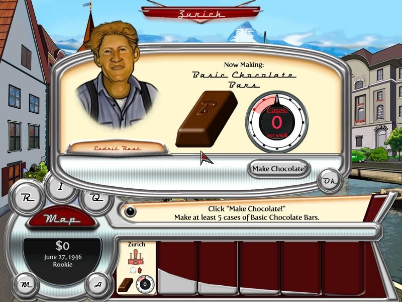 You may make chocolates as often as you like, but remember that each run of the factory takes up a week that you could spend sourcing new ingredients, selling confections, and charting new paths for your business.