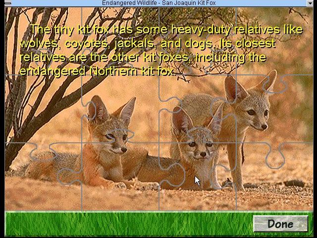 David Bellamy’s Endangered Wildlife is a Educational and Puzzle game developed by Lyriq International Corp and published by Global Software Publishing Ltd in 1996.