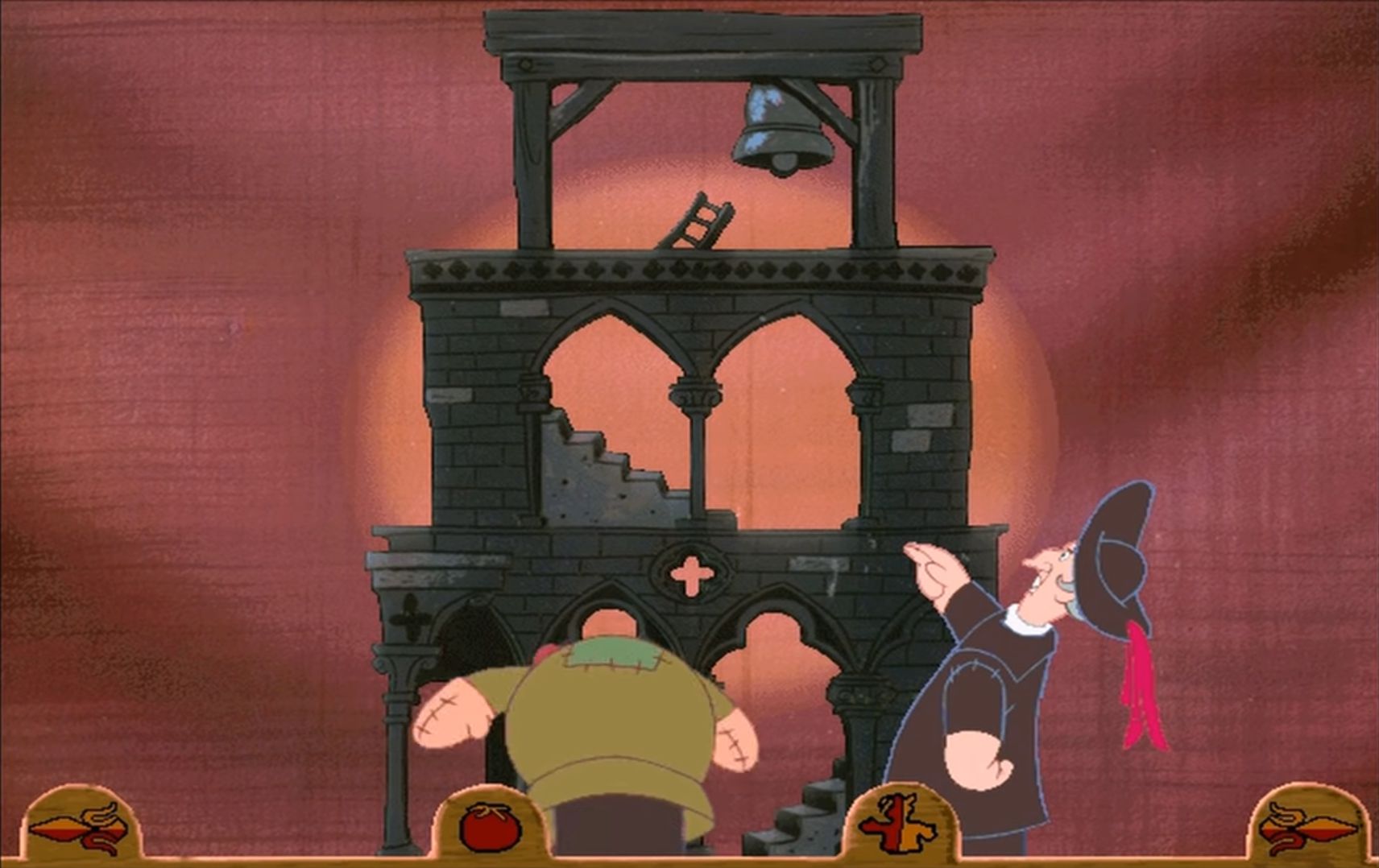 Animated StoryBook: The Hunchback of Notre Dame is a PC video game released in 1996. Released as part of the product line for the Disney movie The Hunchback of Notre Dame, Disney’s The Hunchback of Notre Dame Animated Storybook features the traditional characters of Quasimodo, Esmeralda, Frollo, and Phoebus, as well as the Disney-introduced characters of the gargoyles Victor, Hugo, and Laverne.