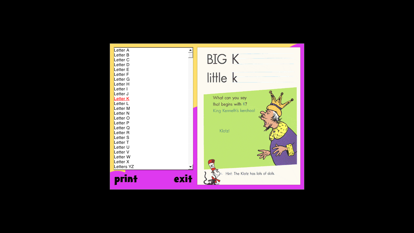 Dr. Seuss Preschool & Kindergarten Reading was released in 1999 and developed by Creative Wonders & published by The Learning Company.