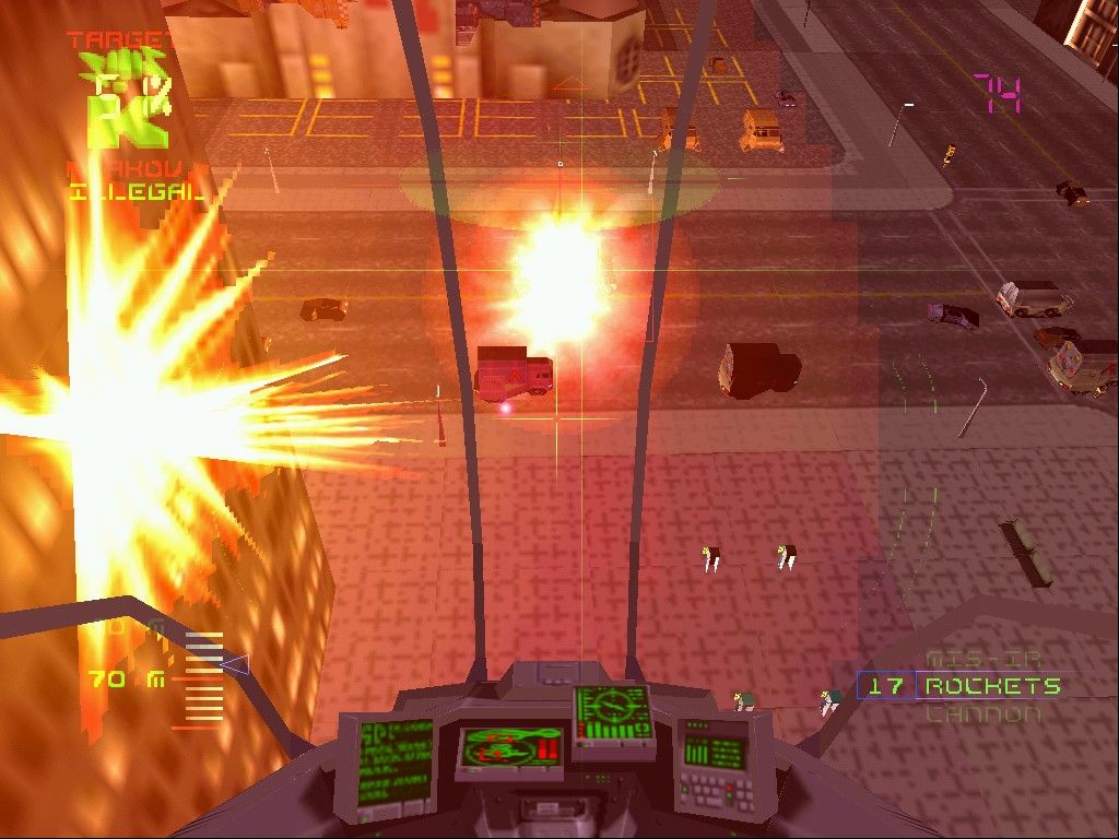 The early levels of the game depict Slater combating enemy gangs. The G-Police suspect “Krakov” corporation is supplying the gangs with weaponry. Krakov’s president however is subsequently the subject of an assassination attempt by the gangs. During this attempt, Hiroshi Tachikawa—a pilot whom Slater describes as flying his gun-ship “like he was born in it”—dies when his gun-ship crashes after mysteriously malfunctioning. In the interests of morale, his death is covered up; Slater notes this incident is reminiscent of Elaine’s death.