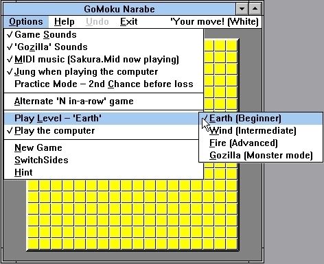 GoMoku Narabe is a strategy game developed and published by P. S. Neeley and released in 1994.