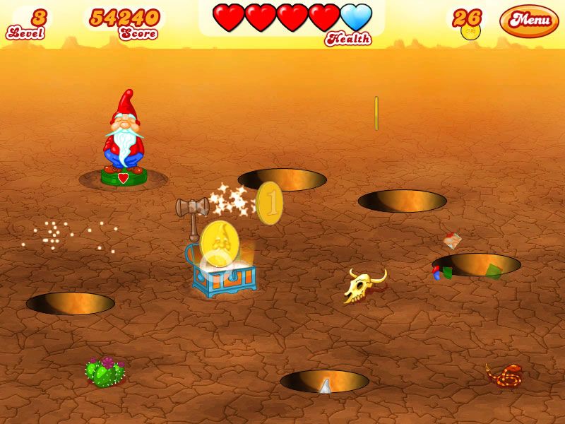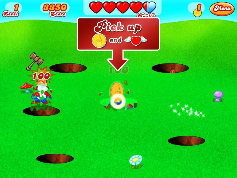 Pesky yard gnomes are invading your lawn! The only way to stop them is with a swift hammer blow to the head. Bash gnomes as quickly as you can while keeping an eye out for special gnomes, prizes and power-ups! Earn gold coins and shop the shiny store for upgrades.VC