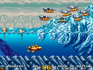 In the Hunt is a 1993 scrolling shooter arcade game developed and published by Irem. Versions for the PlayStation, Sega Saturn, and PC were also released.