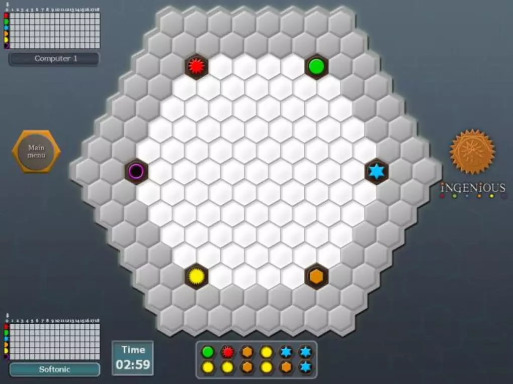Ingenious combines fun gameplay, great components, and real strategy. Simple rules, quick playing time, and a clever system makes Ingenious… ingenious! Carefully place rows of colors – with every move, you create new possibilities. The more colored pieces are placed next to each other, the more points you can gain. The color that you need the most points in is the most important — in the end, it will decide who wins or loses. Practice in a single player game or against the computer’s AI and hone your technique, then surprise other players online with your skill. Ingenious is a treat for the whole family.