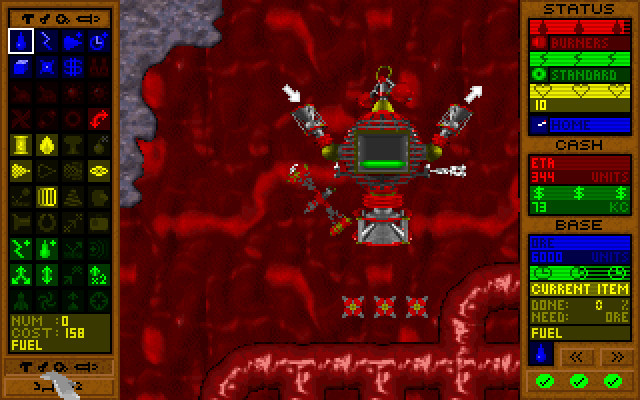 Klondike Moon is a resource management simulation game set in space, described as a “cross between Asteroids and Dune II”. The game follows a loose story in which the player has taken a loan to start mining operations on an asteroid, and is required to pay off the debt, whilst interfering with their competitors.