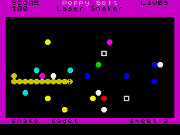 Laser Snaker is an action game developed and published by Poppy Soft in 1984.