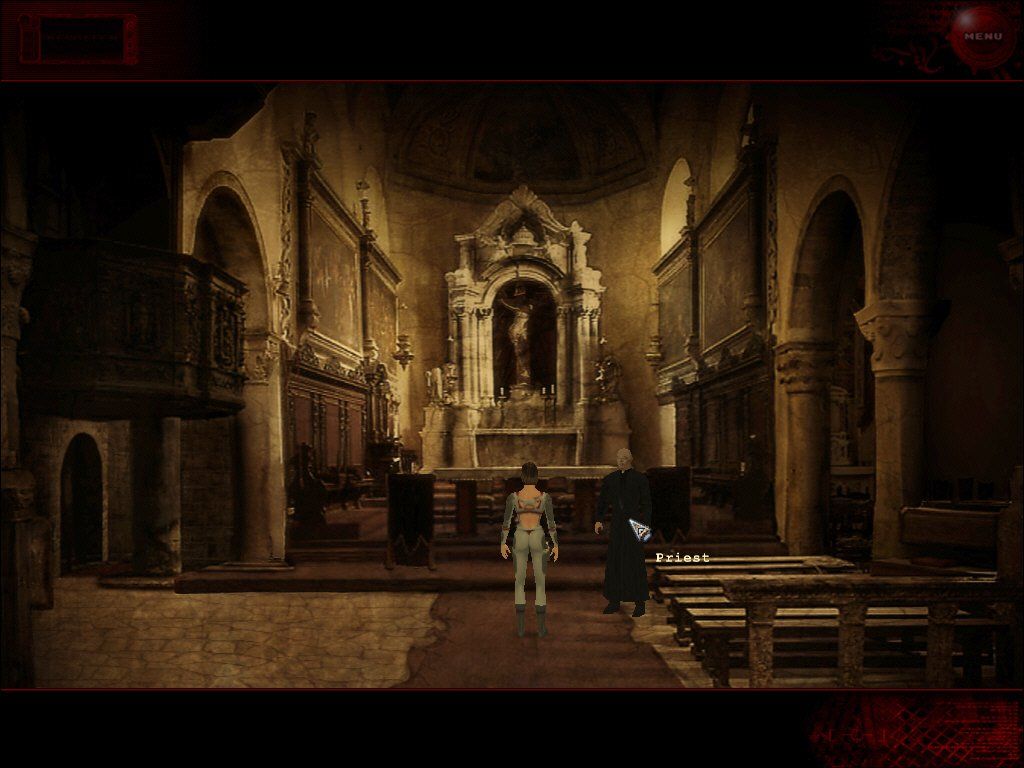 The game is mouse-driven; a traditional point-and-click from the third-person perspective. Left-clicking the mouse allows the player to move across the screen, talking to other characters, and investigating objects, while right-clicks open Ren’s inventory.