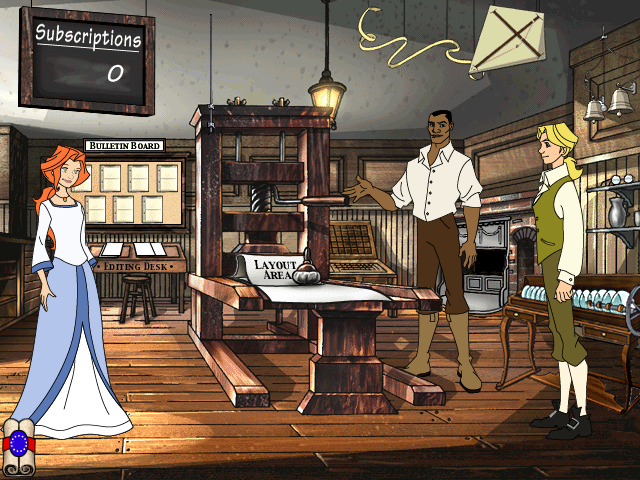 Throughout the New World, there’s a growing sense of unrest. More and more of the colonists are yearning for greater independence and struggling to be free from British control. What starts as a protest over unfair taxation escalates into a full-blown revolution that will change the course of history. Your assignment: find the facts and come back with the story! As an apprentice reporter for BenFranklin’s Pennsylvania Gazette, you’ll be covering the key events of the American Revolution, from the Boston Tea Party to the climactic Battle of Yorktown. You’ll be working with Sarah Phillips and James Hiller, two talented young apprentices at the Gazette. Sarah, ever loyal to her king and country, just arrived from London to search for her father. However, the street-smart James is excited about the prospect of greater independence from, and less interference by, the British. Even though their perspectives may be different, Sarah and James are always ready for the challenge of getting the “scoop” that will be tomorrow’s front-page views. Sarah and James will be working closely with Moses, Ben’s right-hand man in the print shop. Moses learned all about the news business from Ben. They both will be giving James and Sarah a hand. You’ll meet many different people with many different points of view, so you’ll need to be careful to separate fact from opinion and find information that is both accurate and detailed. Because it’s a time of great uncertainty, not all your sources will be immediately interested in talking to the press. Sometimes, you’ll have to find ways to show you can be trusted, or simply do someone a favor to get what you need. When you’re finally able to learn the who, what, when, where, and why behind your story, you’ll be ready to make front-page news!