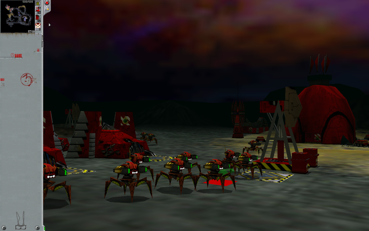 Machines uses a 3D polygonal landscape, which players can use to their advantage, attacking from or hiding behind hilltops. The viewpoint can be switched between a default isometric, strategic ‘zenith’ camera, and first person perspective; the latter typically being used to explore buildings during espionage missions. 50 different machines can be researched and built, characterized by a plasma-based techtree and a projectile-based techtree combined with different methods of movement (Examples: 4 or 6 Spider legs, Wheels, Tracks, Hover-engines, Flying, 2 Legs). Furthermore, battalions can be developed with specific strengths to support a personalized fighting strategy. The game also includes 25 different weapons, including Flame-throwers, Vortex Singularities, Plasma Rifles, Mini-guns, Ion Cannons and Nukes.