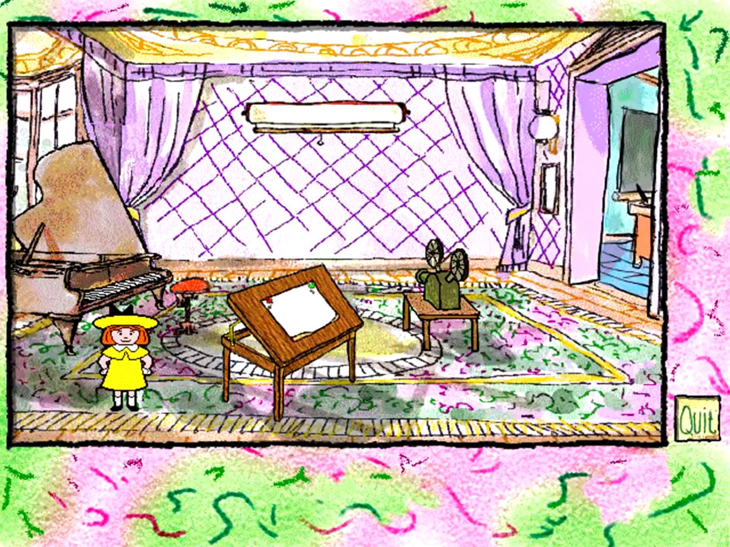 Each game has Madeline cheering on the player in her own inimitable voice. Each of the games comes with three difficulty levels, with the exception of the music room downstairs and the decorate-it-yourself room upstairs. The music room also contains movies taken from the Madeline television series.
