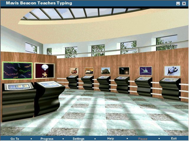 Mavis Beacon teaches Typing 11: UK version is one of a series of typing tutorials featuring the eponymous Ms. Beacon. As with other titles in the series games are used to aid in the learning process designed to build speed and accuracy. This title features a ‘Game Hallway’ with eight games.