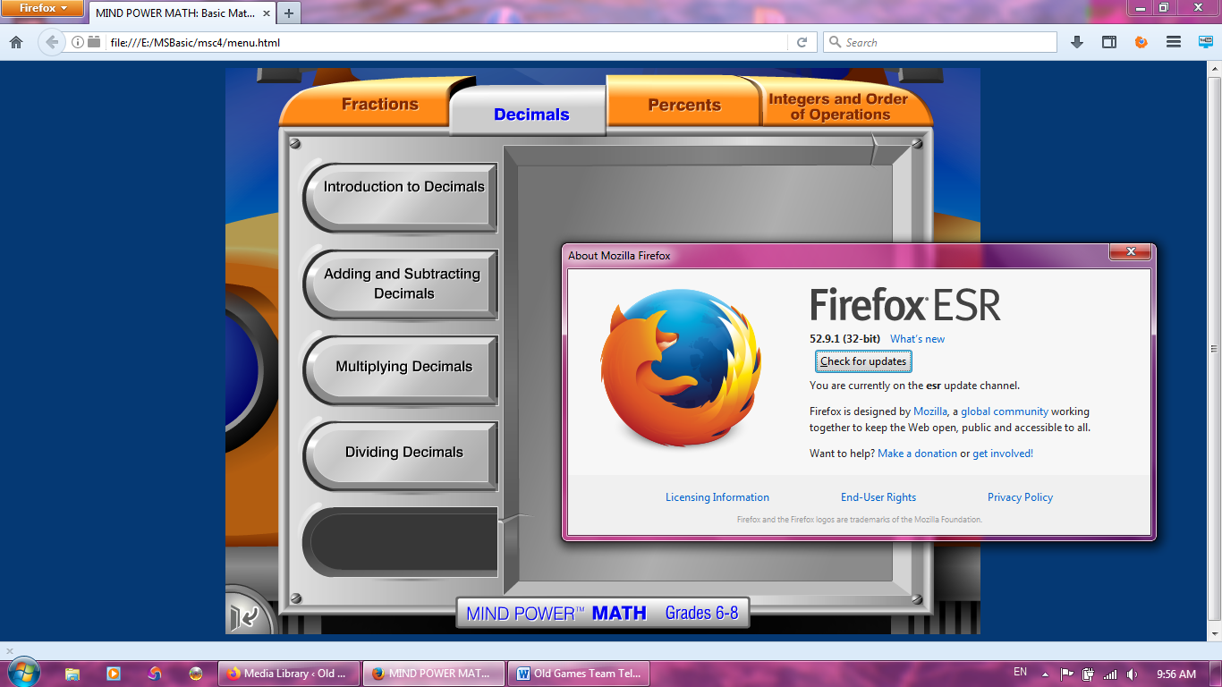 2. if you installed Firefox it will set the default browser to Firefox. Mind Power Math will not work on Firefox so you need to set the default browser back to internet explorer. You can do that by selecting Start > Set Program Access and Defaults.