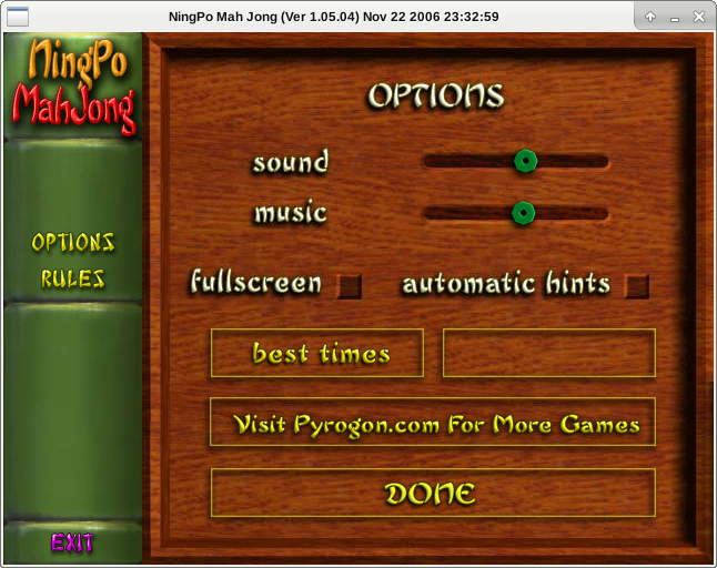 NingPo Mah Jong is a puzzle game released in 2002. It was developed by Pyrogon and published by Pyrogon and Linux Game Publishing.