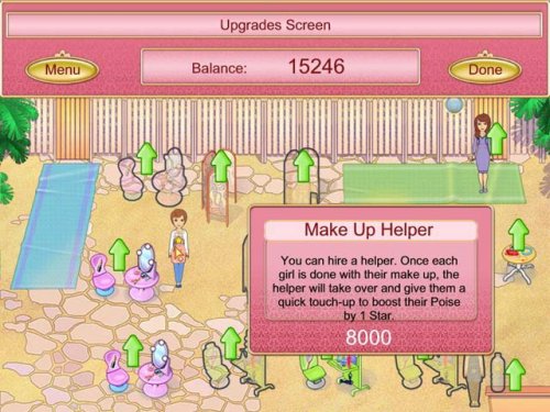 Help Bess get prospective princesses ready for their spotlight in this glamorous and engaging challenge! Beautify everyone from the Girl Next Door to the Southern Belle in 5 unique beauty pageant locations. Style hair, apply makeup, dress the contestants and more in 50 levels of fun! Use your earnings to hire helpful employees and purchase upgrades to keep the girls looking and feeling their best. It’s time to impress the judges in this frenzy of pageant fun!
