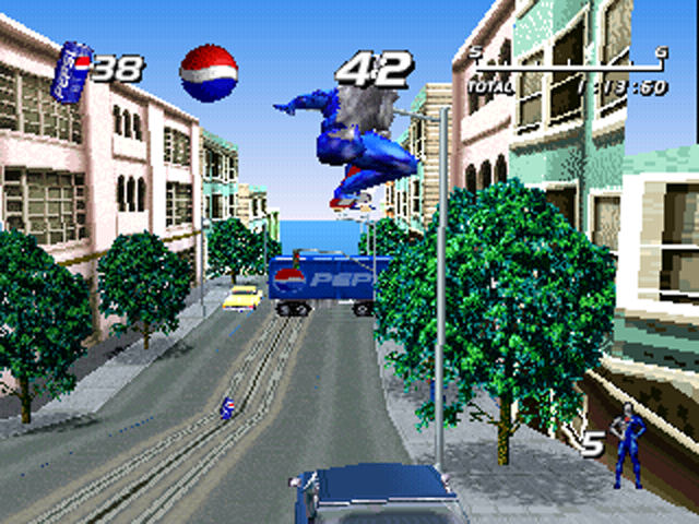 Pepsiman is an action game developed and published by KID for the PlayStation. It was released in Japan on March 4, 1999, and is based on the American carbonated soft drink Pepsi’s eponymous superhero mascot. It focuses the player on avoiding obstacles by running, dashing, and jumping, while Pepsiman automatically runs forward through each of the game’s stages.