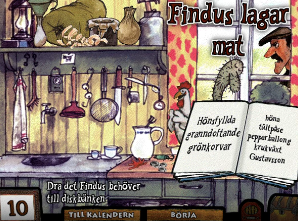 Pettson o Findus julkalender is an Educational game developed by Alfabeta Gammafon Multimedia and published by Bajoum Interactive AB in 1997.