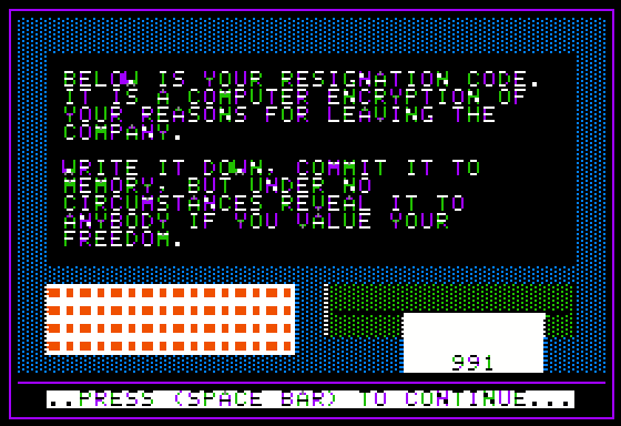 Prisoner 2 is an adventure game developed and published by Edu-Ware Services, Inc. in 1982.