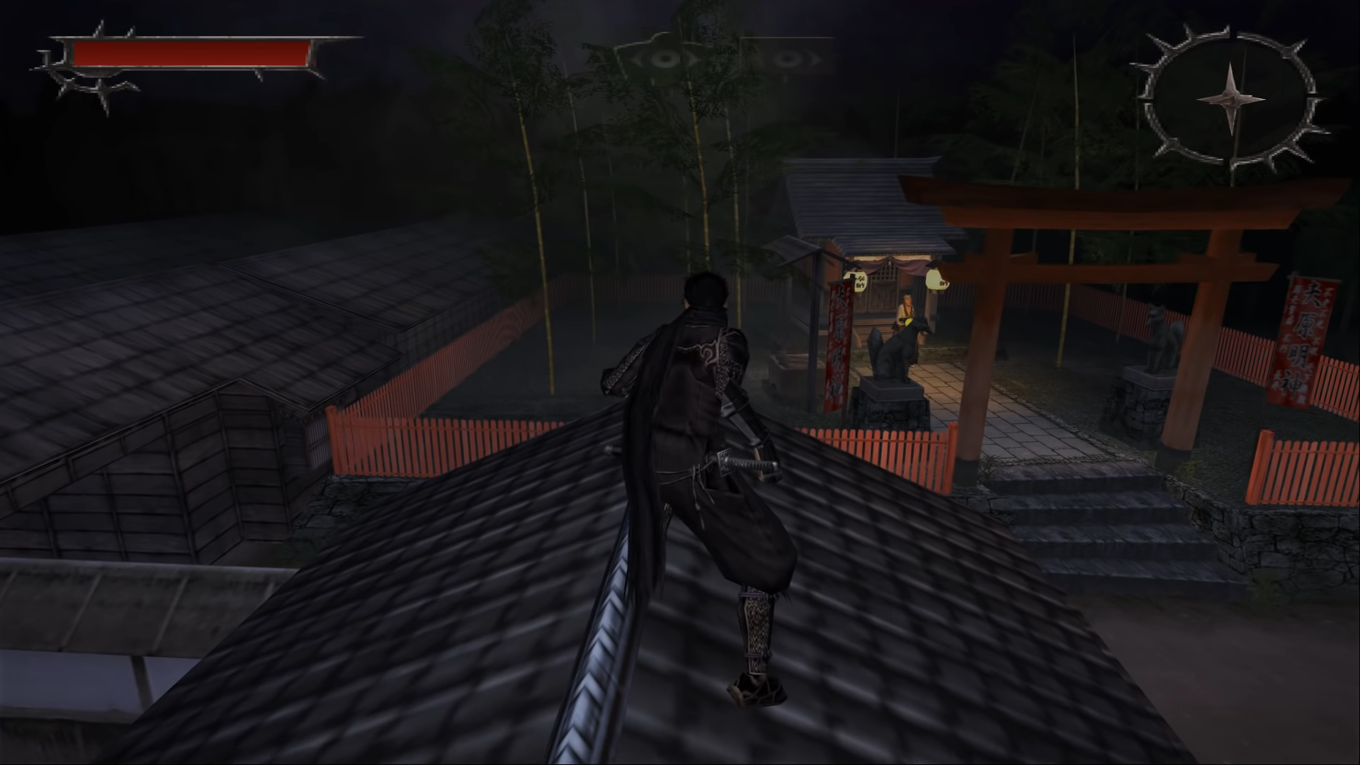 Shinobido has the player take the role of an amnesiac ninja who wakes to find himself lying on the bank of an unfamiliar river. In fact, everything is unfamiliar, as the man finds that he can no longer remember his identity and has no memory of his life or situation up until the point of his regaining consciousness. Finding only a sword lying next to him on the ground, the man stumbles across an isolated and seemingly derelict shack, only to have an arrow shoot past his head and lodge itself into the shack’s outer wall. Startled, the man scans the trees and undergrowth surrounding him, but then notices a letter attached to the arrow. The letter states that the person who wrote it is simply a “concerned bystander,” and further identifies the amnesiac man as “Goh,” a ninja of the Asuka clan, which was wiped out the previous day. The letter informs Goh that his memories and soul have somehow been stolen and placed within eight mystical stones which were scattered during the initial attack on the Asuka ninjas’ village, and then further scattered by people who have located and claimed the stones. is a stealth video game developed by Acquire and released for the PlayStation 2 in 2005.