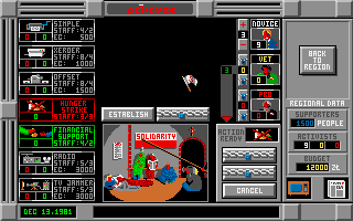 Solidarność is a simulation and strategy game released in 1991. It was developed by P.Z.Karen Co. Development Group and published by California Dreams.