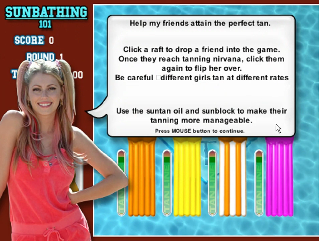 Sunbathing 101 is a puzzle game released in 2006. It was developed by Blockdot and published by Kewlbox.