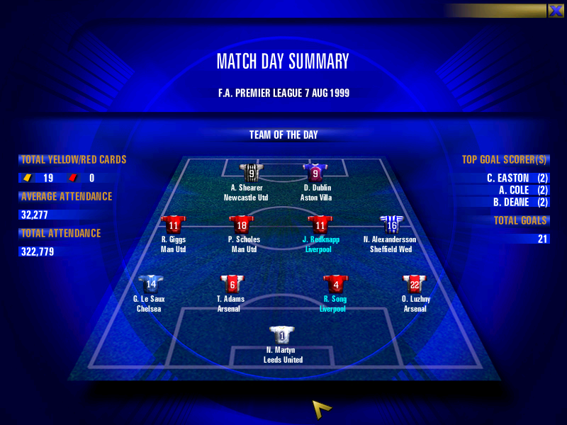 The F.A. Premier League Football Manager 2000 Screenshots