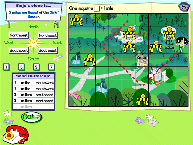 The Powerpuff Girls Mojo Jojo’s Clone Zone is an educational game in which players help the titular Powerpuff Girls stop Mojo Jojo and his army of clones, alongside other villains, from rampaging across the city of Townsville. This is done through various learning-based minigames, such as Skyscraper Chaser, where Blossom must choose the correct number to complete an equation, or Letterbugs, where Bubbles must spell out the word said by The Talking Dog.