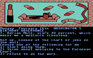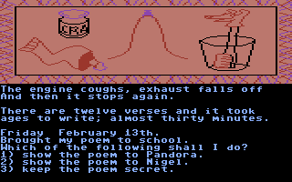 The Secret Diary of Adrian Mole Aged 13¾ is an adventure game released in 1985. It was developed by Level 9 Computing, Ltd and published by Interactive Fiction, Licensed Title.