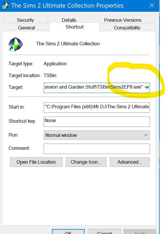 Also I added a space then -w behind the target path of the shortcut in desktop after the ”