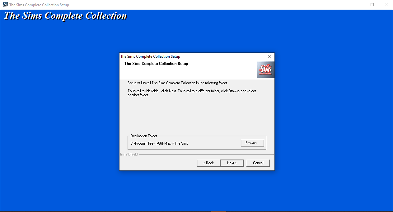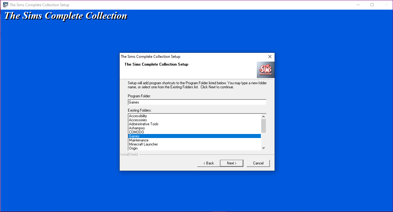 After you select the file location, install wizard will ask you to define a program category; CHOOSE GAMES NOT MAXIS