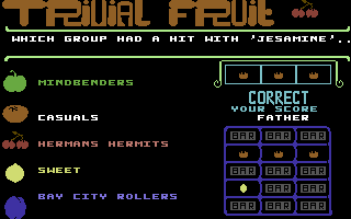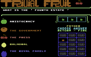 Trivial Fruit is an educational game developed and published by Pirate Software in 1988.
