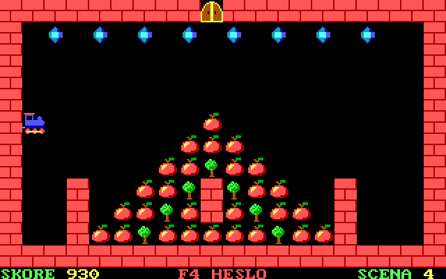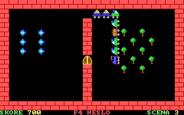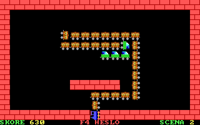 The train is moved to collect cars, planes, diamonds and other objects, which are collected in attached wagons. Collecting all the objects unlocks the golden gate to the next level. If the train touches walls or wagons, the level restarts. There are 50 levels, which are available with passwords.