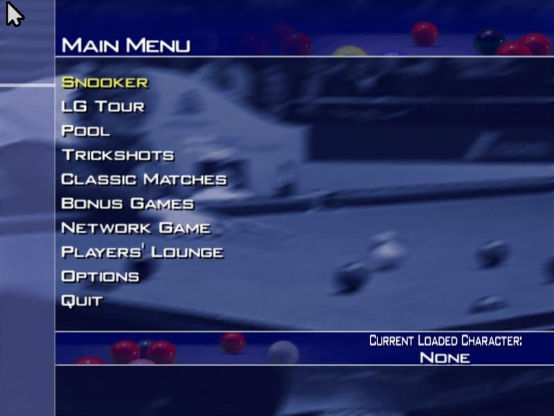 The game features Career, Quick Play and Trickshot modes. The game also includes eight-ball, nine-ball, and blackball pool. For a series first, the game also allows players to play Snooker online, via a modem. There is also the option to create your own custom tournaments for play against the AI, or another player.