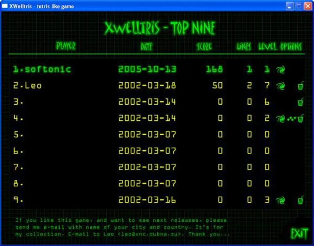 XWelltris is a puzzle game developed and published by Leonid V. Khramov and released in 2002.