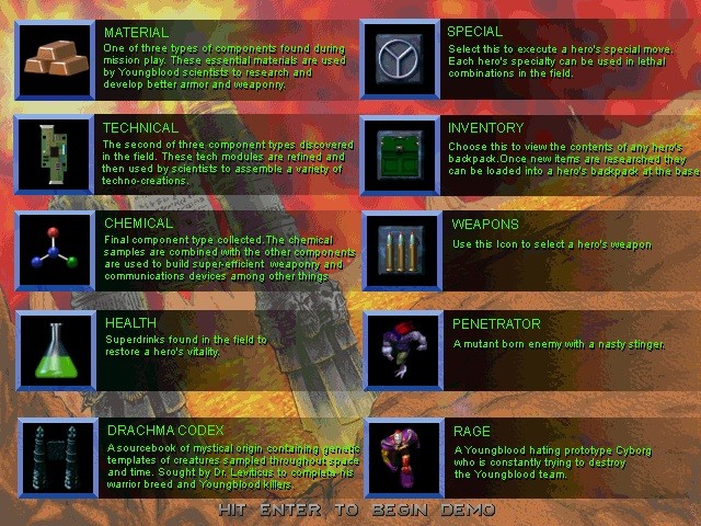 Youngblood: Search and Destroy is an isometric action game that was originally scheduled for being published for PC and Sony PlayStation in November 1997. However, the PC version has been postponed to May 1998 while the PlayStation version was pushed back to an undisclosed date.